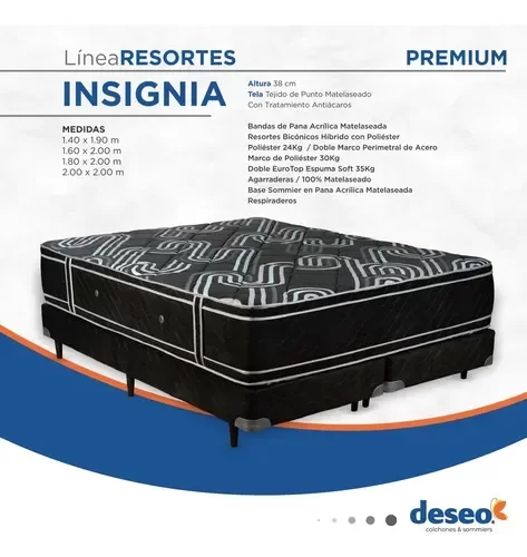 Colchón Deseo INSIGNIA - Resorte Super King Size 200x200x38